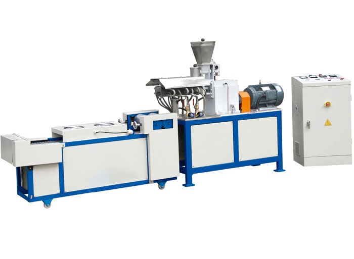 该机是与生产用挤出机相配套的小样机,由于螺杆转数与生产挤出机转数基本一致,所做出小样与大机生产基本一致。与之相配套的压片机包括传送带及破碎一次完成,该机可做小样、小试、中试、小批量生产。